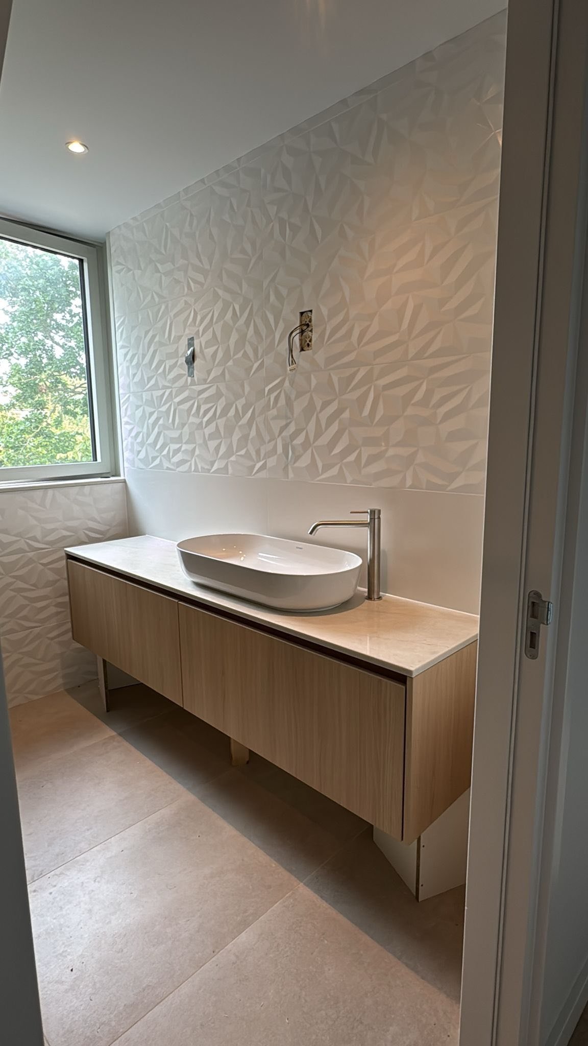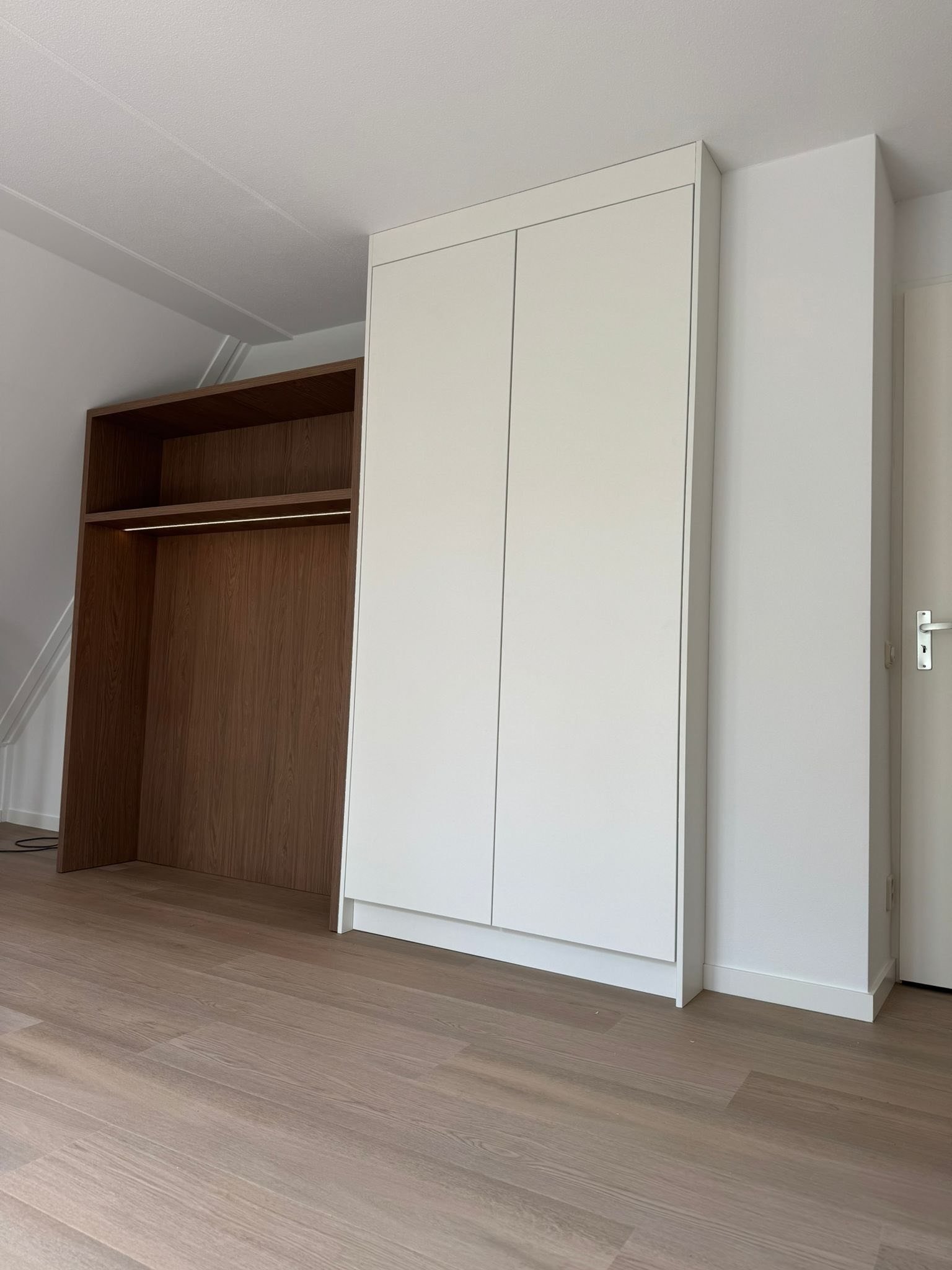 Voor dit project maakten we drie maatwerk oplossingen die perfect passen onder een schuin dak. De kasten zorgen voor extra opbergruimte zonder dat er ruimte verloren gaat. Het badmeubel is strak, praktisch en sluit mooi aan op de badkamer.