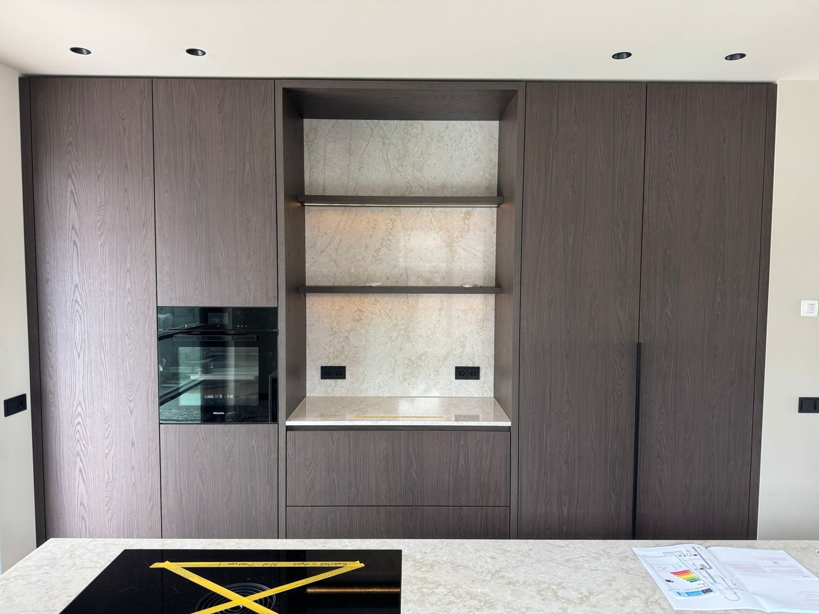 Voor dit project maakten we een moderne keuken met een groot kookeiland. De keuken heeft strakke lijnen, een rustige uitstraling en biedt veel werkruimte.